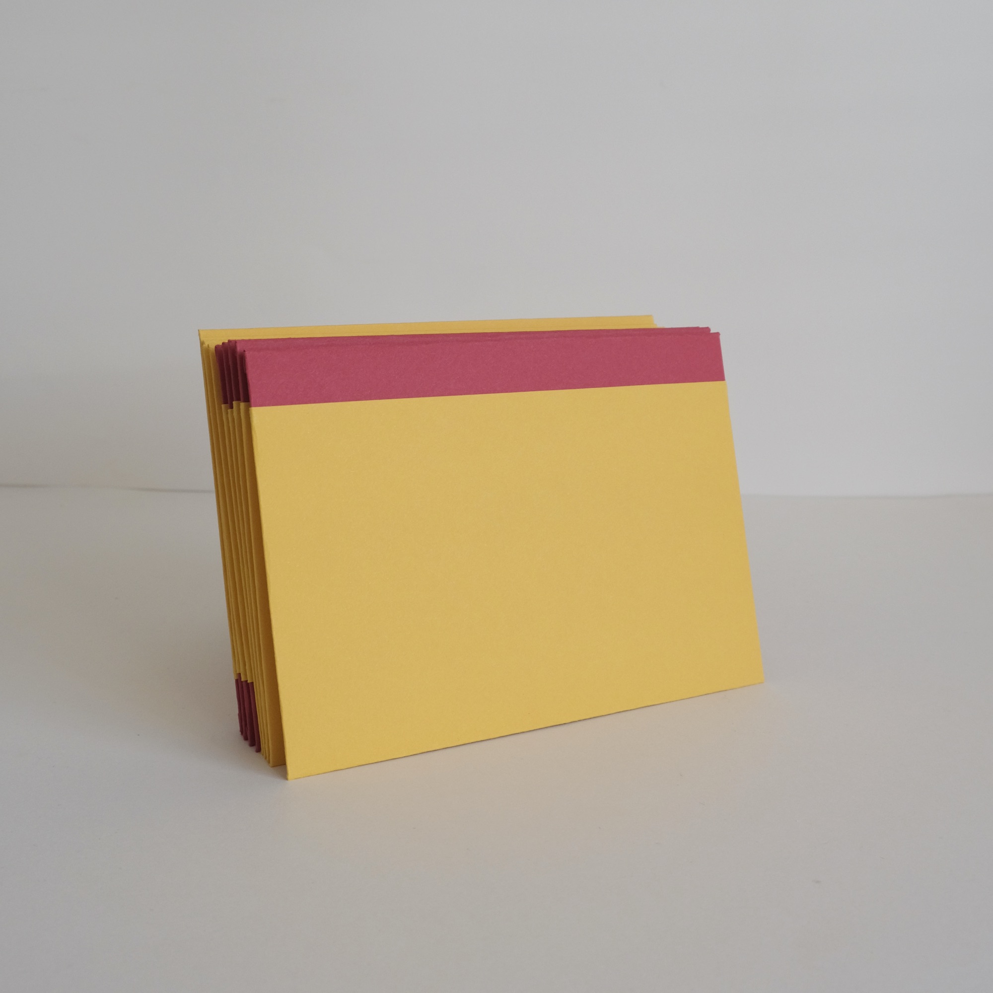 The Orlando Note Set (and the Orlando Notebook) were inspired by a hotel I came across that had really cool seventies vibes using this colour way. I’m nearly sure it was called Orlando but for the life of me I can’t find it, which is a shame. – Mundy